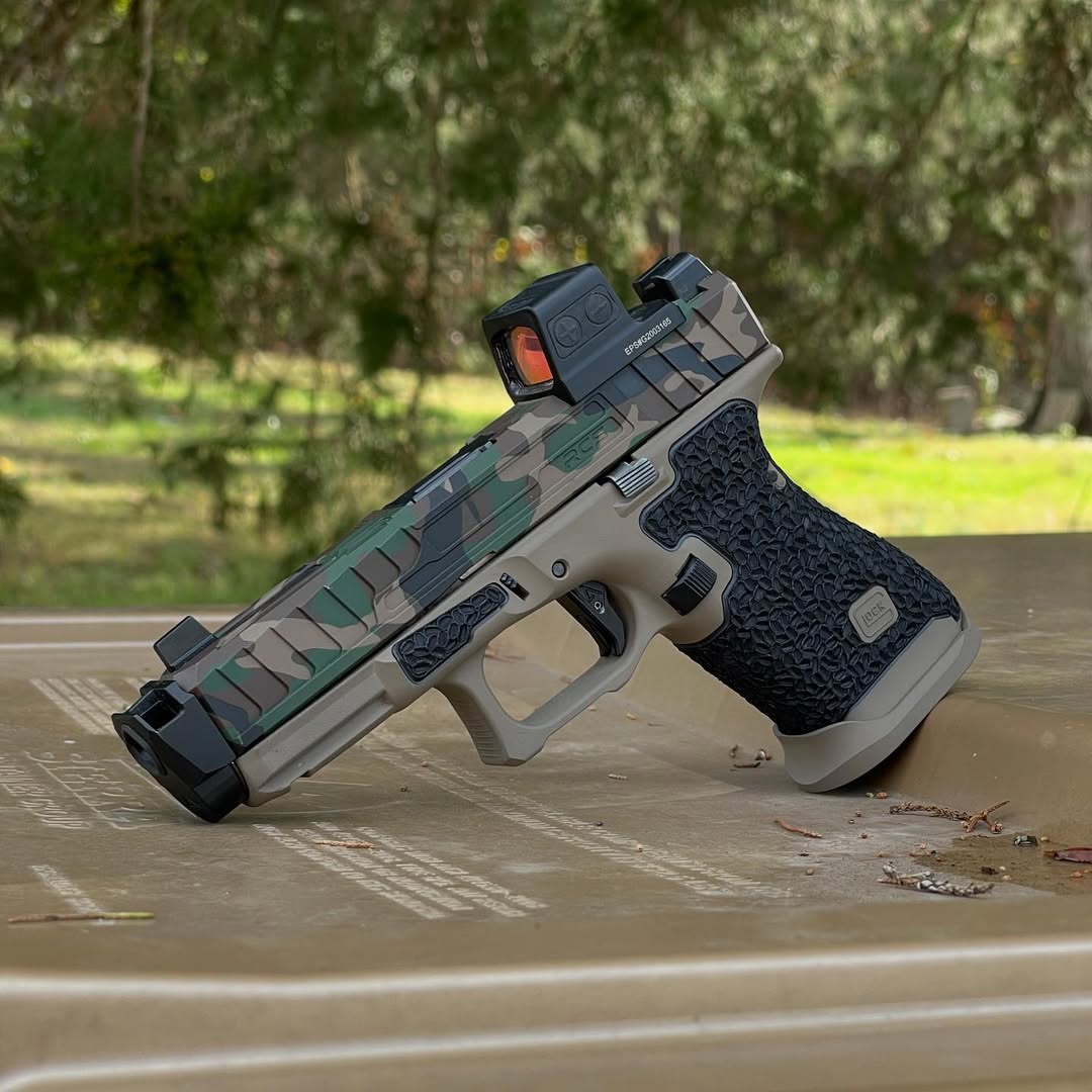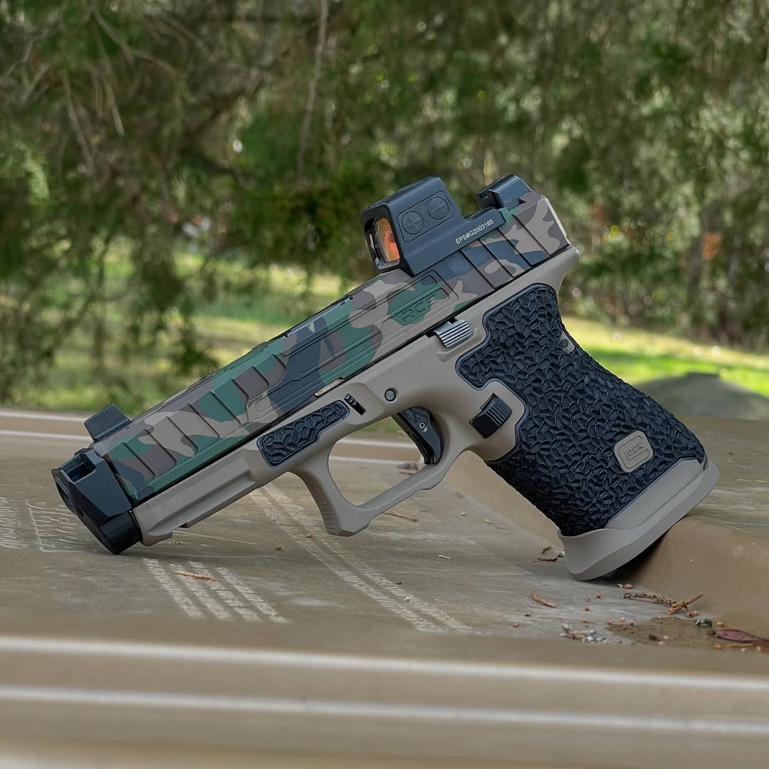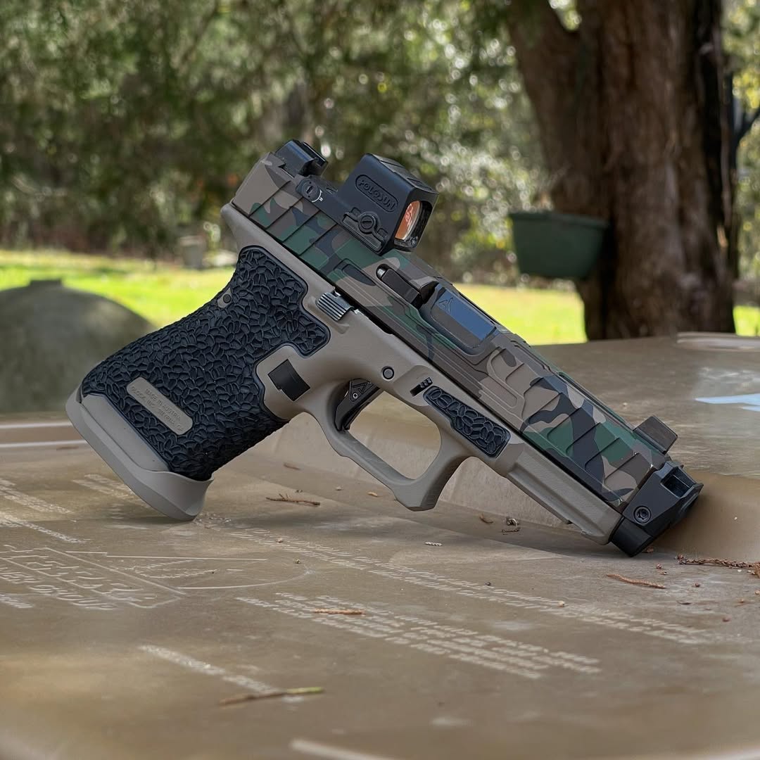 Elevate your Glock 19 Gen 5 experience with this meticulously crafted Custom Full Build, featuring an aggressive yet ergonomic M81 slide paired with a durable Flat Dark Earth (FDE) frame. Designed for superior control and precision, this build incorporates premium modifications to enhance grip, handling, and aesthetics.
